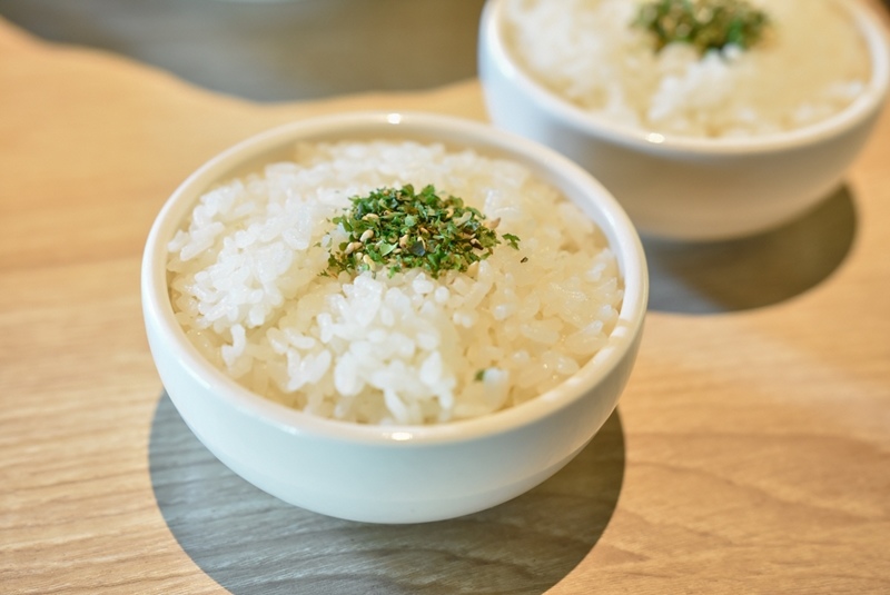 主食為煮得Q彈的花東越光米,另外加了$38升級海苔烤鮭魚飯糰,香氣與口感兼具相當好吃。