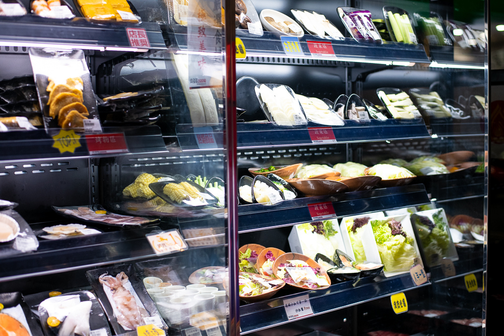 食材都有封膜及標價,就像逛超市一樣選完食材後到櫃台結帳,新型態的消費方式還真的滿有趣的~